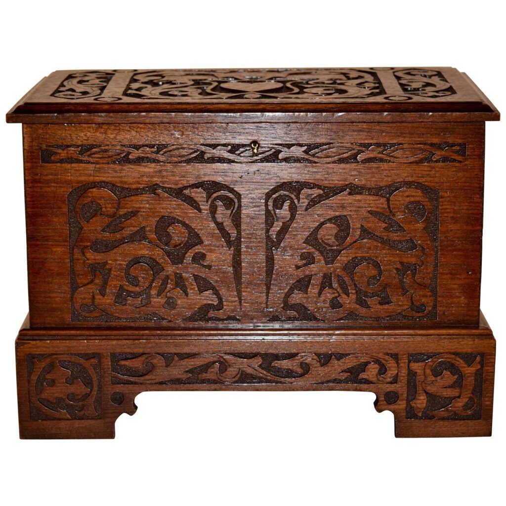 Many blanket chests were adorned with carvings as well. Carvings could be found on the front panels, top lids, and even the sides of the chests. These carvings often featured intricate scrollwork, foliage, or figurative motifs.