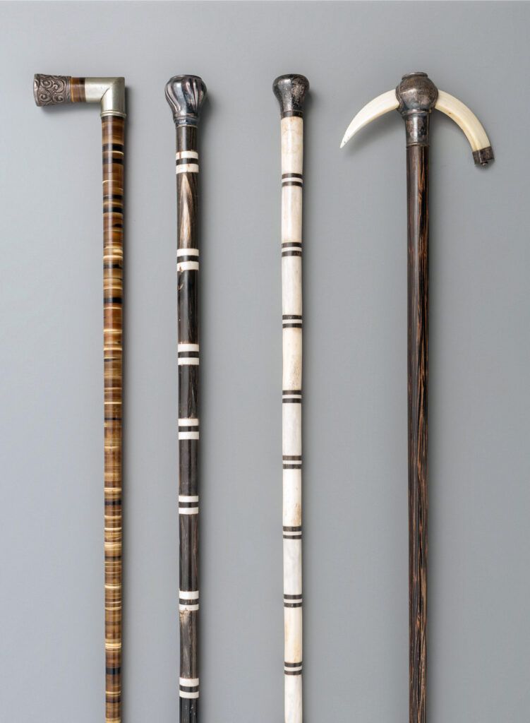These four types of canes were popular during the 19th century and reflected the fashion, practicality, and social norms of the time.