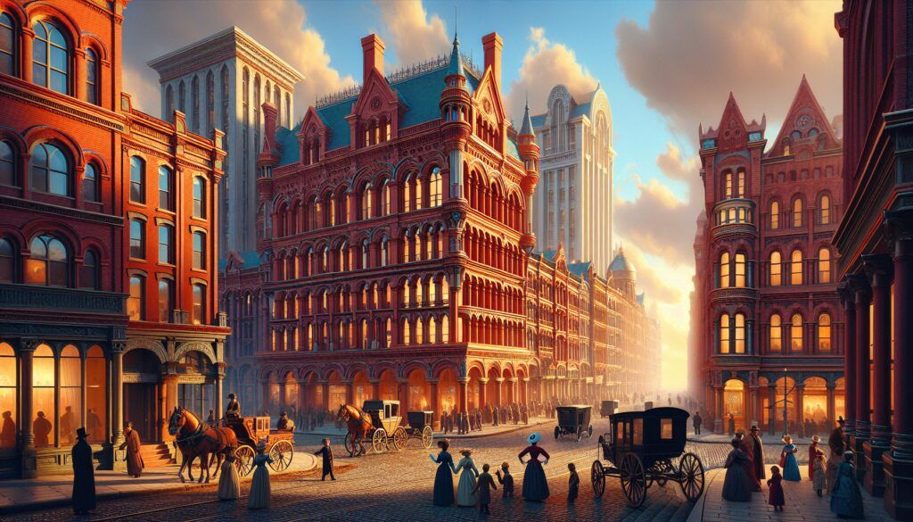 The Flatiron Building, completed in 1902 in New York City, though not technically within the 19th century, remains an iconic symbol of early skyscraper architecture with its distinctive triangular shape and Beaux-Arts style. Additionally, the Auditorium Building in Chicago, also designed by Adler and Sullivan, combined a hotel, office space, and theater, showcasing the multipurpose potential of skyscraper design.