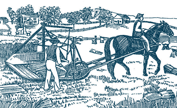 7. Mowers and reapers: Mowers and reapers were used to cut down and gather crops such as wheat, oats, or barley. These machines significantly reduced the labor required for harvesting.
