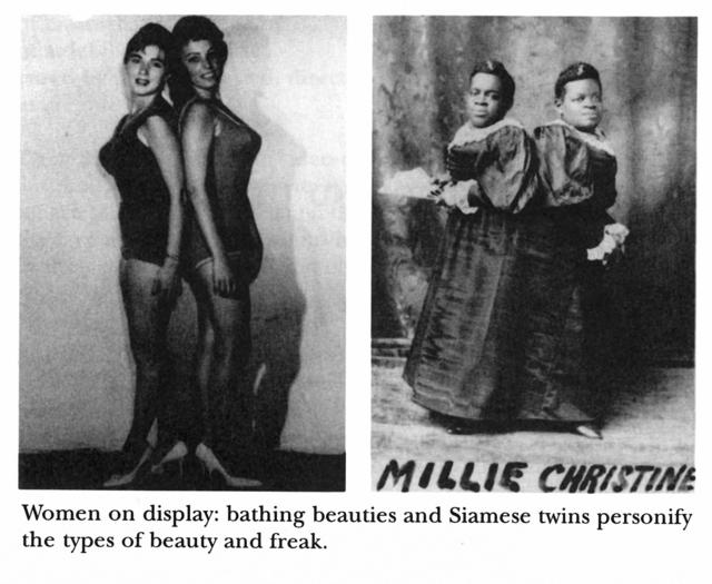 How did the exhibition of "freaks" in 19th century freak shows reflect and perpetuate societal stereotypes and prejudices?