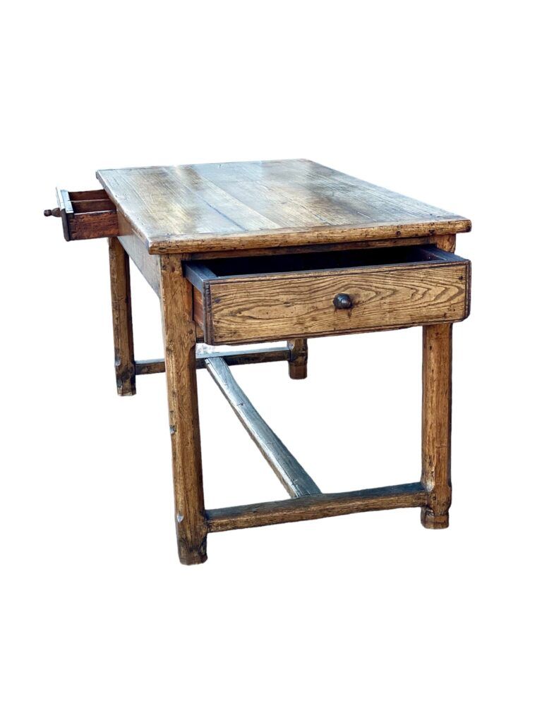 One key feature that sets 19th century French farmhouse tables apart is their generous size. These tables were often expansive, providing ample space for large gatherings and family meals. This reflected the importance placed on communal dining and socializing in the 19th century.