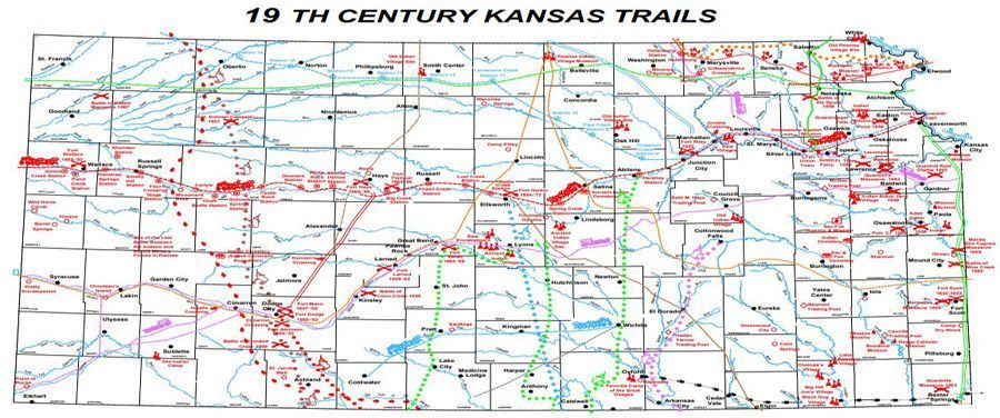 In the 19th century, pioneers used several major trails to travel through Kansas: