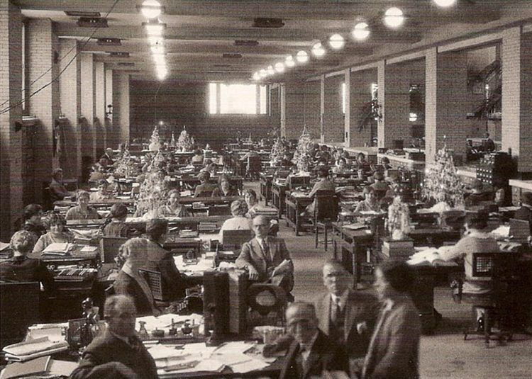 In the 19th century, offices were organized and structured in a hierarchical manner with clear divisions of labor.