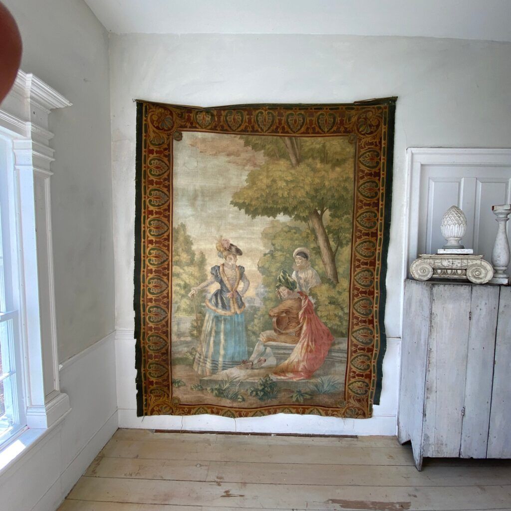 2. Design and Motifs: Antique tapestries often feature classic designs and motifs that were popular during the 19th century. These can include historical events, mythological scenes, landscapes, floral patterns, or portraits. Researching the design style and comparing it to known examples from the era can help identify its age.