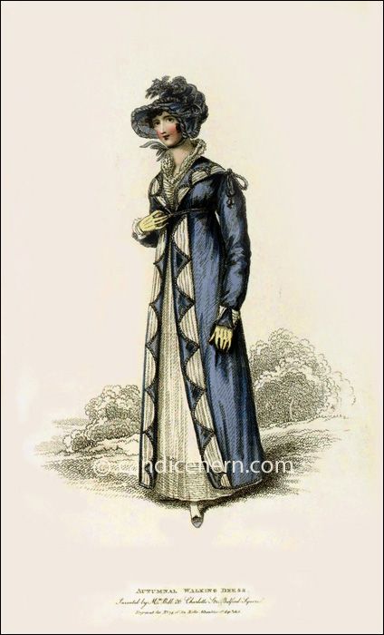 During the early 1800s, walking dresses were typically long and made of heavy fabrics, such as silk or wool. They featured high waists, often emphasized with belts or sashes, and full skirts that reached the ground. Women would wear bonnets or straw hats to protect themselves from the sun.