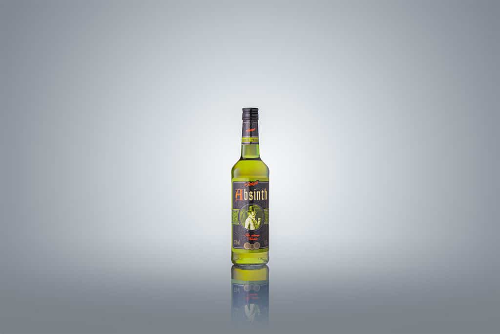 Absinthe is a distilled spirit made using various herbs, primarily including grand wormwood (Artemisia absinthium). The intense green color of absinthe comes from the chlorophyll in the herbs. It typically has a high alcohol content, ranging from 55% to 75%.