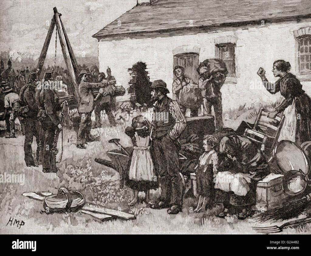 In the 19th century, the eviction process in Ireland was a harsh and often brutal process, particularly during the period of the Great Famine (1845-1852). Landlords held significant power over their tenants, and many used evictions as a means to clear their land for more profitable agricultural practices.