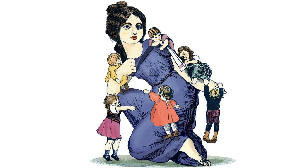 Many women in the 19th century had large families, and motherhood was considered a mark of a woman's success and fulfillment. However, the reality of motherhood during this time was often physically and mentally demanding. Mothers were responsible for the daily care of their children, which included breastfeeding, bathing, dressing, and teaching them basic skills.